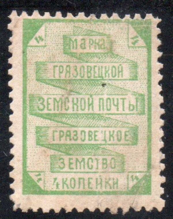 Грязовецкий уезд 4 коп. зелёная. 1 марка.