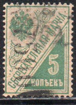 Чёрная надпечатка ручным штемпелем "7500" на 5 коп. Сберегательной марке ( водяной знак вертикальны ромбы ). Тип II - расположение надпечатки сверху вниз. Погашена календарным штемпелем. |