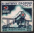 20 коп. ЗА САНИТАРНУЮ ОБОРОНУ СРСР. "ЧЕРВОНИИ ХРЕСТ УССР". Паровоз. 1 марка.