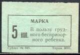Ульяновск. 5 коп. В пользу грудного беспризорного ребёнка. 1 марка.