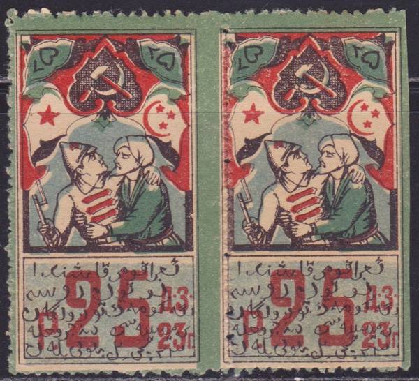 25 руб. Помощь Раненым Красноармейцам. Туркестан. Абкляч. Пара марок.