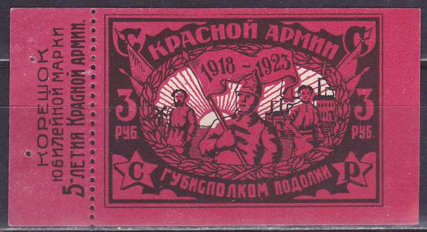 Губисполком Подолии. 3 руб. Красная. С Левым Купоном. Выпускались Без Клея.