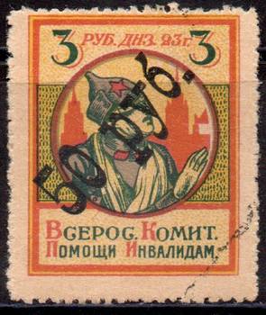 Надпечатка "50 руб." на 3 руб. Всерос. Комит. Помощи Инвалидам. 1 марка.
