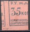 Комиссионый Железнодорожный Сбор: 35 коп. Чёрная на розовой бумаге. 1 марка.