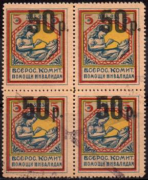 Нижние две марки погашены специальным фиолетовым штемпелем.