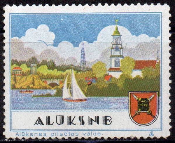 Алюксне. Архитектура, ландшафты и герб. 1 марка.