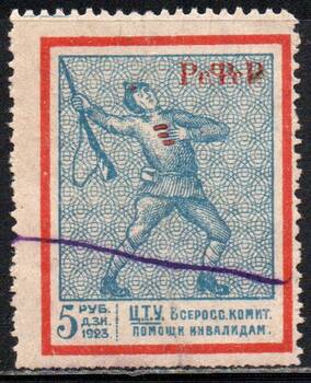 5 рублей. Ц.Т.У. Всероссийский Комит. Помощи Инвалидам. 1 марка.