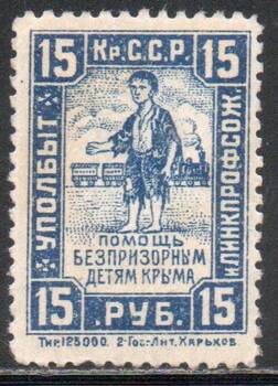 15 р. Синяя. Помощь Беспризорным Детям Крыма. 1 марка.
