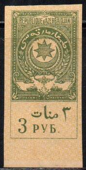 3 руб. Гербовая марка Азербайджана. 1 марка.