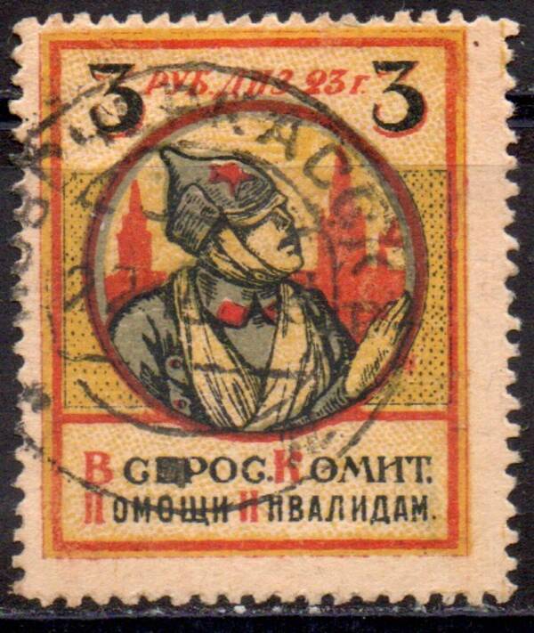 С зубцами. Абкляч. Погашена календарным почтовым штемпелем "Новочеркасск 22.10.23 * * * ".