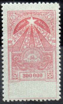 300000 руб. Карминовая. Гербовая марка Грузии.
