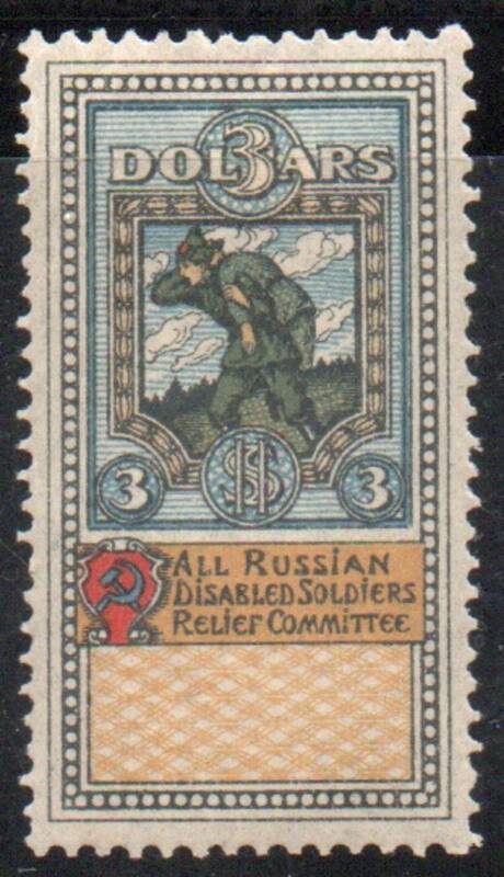 3 Dollars. Многоцветная. Помощь раненым красноармейцам. 1 марка.