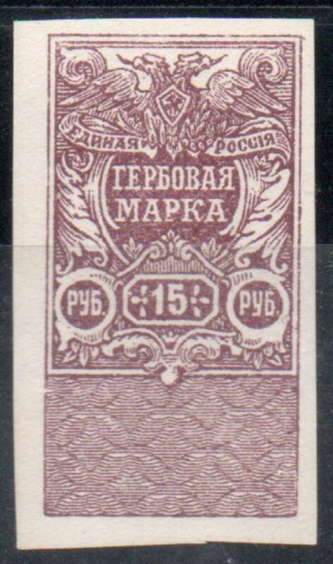 15 руб. Фиолетовая. Юг России. Гербовая марка.