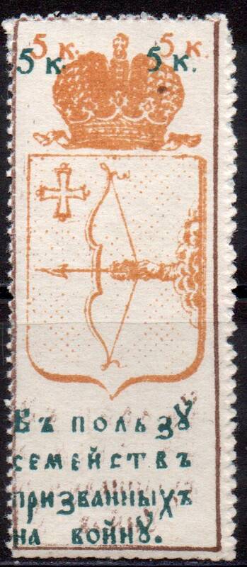 5 коп. В Пользу Семейств Признанных на Войну. 1 марка.