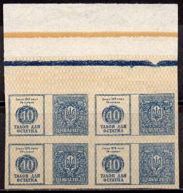 40 Ш. Налог на Зрелища и Увеселения. Выпуск Администрации Центральной Рады. Квартблок.