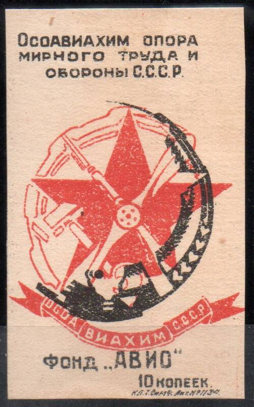 10 коп. Чёрная и красная. Фонд "Авио" Симферополь 1931 год. 1 марка.