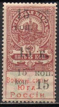 Чёрная и красная типографская надпечатка на Гербовой марке Российской Империи. С клеем.