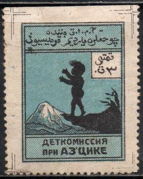 Двухцветная литография. С разделительными уголками. С зубцами, верх с пропуском перфорации. Остатки своего клея.