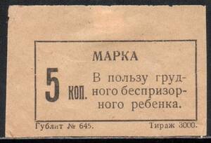 Ульяновск. 5 коп. В пользу грудного беспризорного ребёнка. 1 марка.